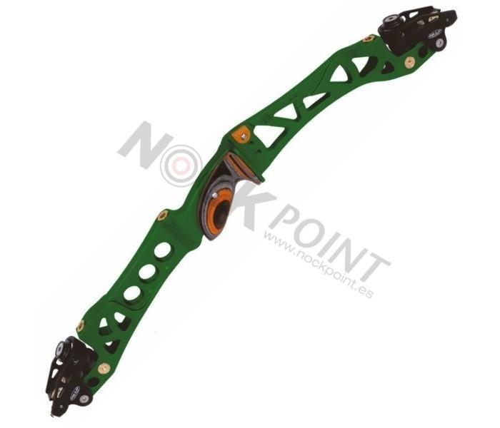 Cuerpo realizado en aluminio fresado. Atractivo acabado anodizado. El innovador diseño de cajetín flotante de las palas permite un ajuste del peso en libras del 30 %. Sistema de dampers integrados que amortigua las vibraciones. Dispone de sistema de alineación de palas. Componentes de acero inoxidable de alta calidad. Empuñadura de madera. Compatible con todos los pesos G1 y G4 Barebow y sistema de montaje UFO de Gillo.