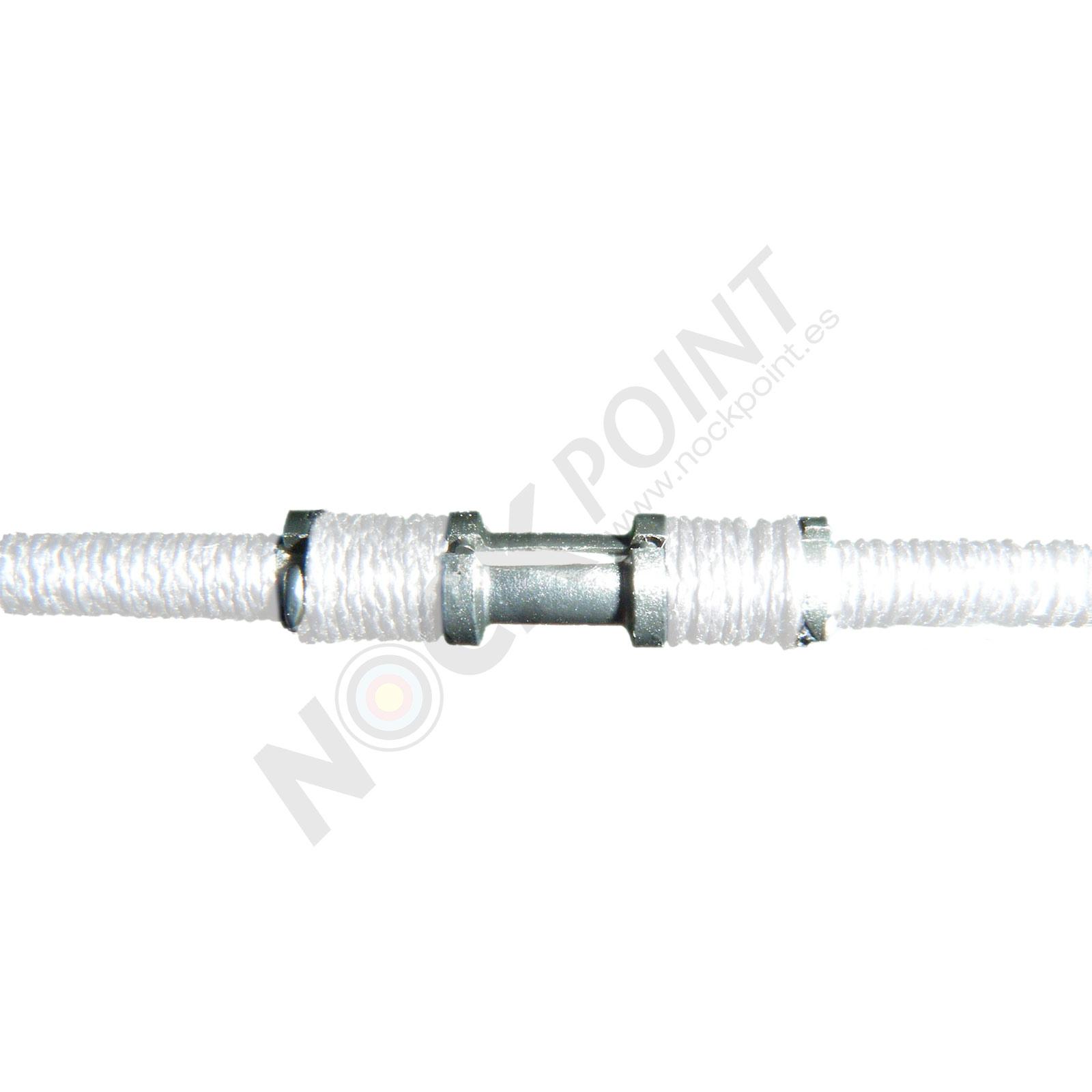 El Nocking-Point consta de dos mitades idénticas, que deben ser forradas juntas en el encoque, prestando atención a la alineación de los anillos y los enganches.