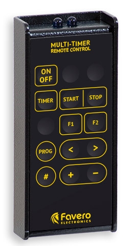 El Archery Timer incluye de serie el alimentador 100-240V/12VCC y el control remoto a rayos infrarrojos (alcance 15m y alimentación con batería alcalina de 9V).