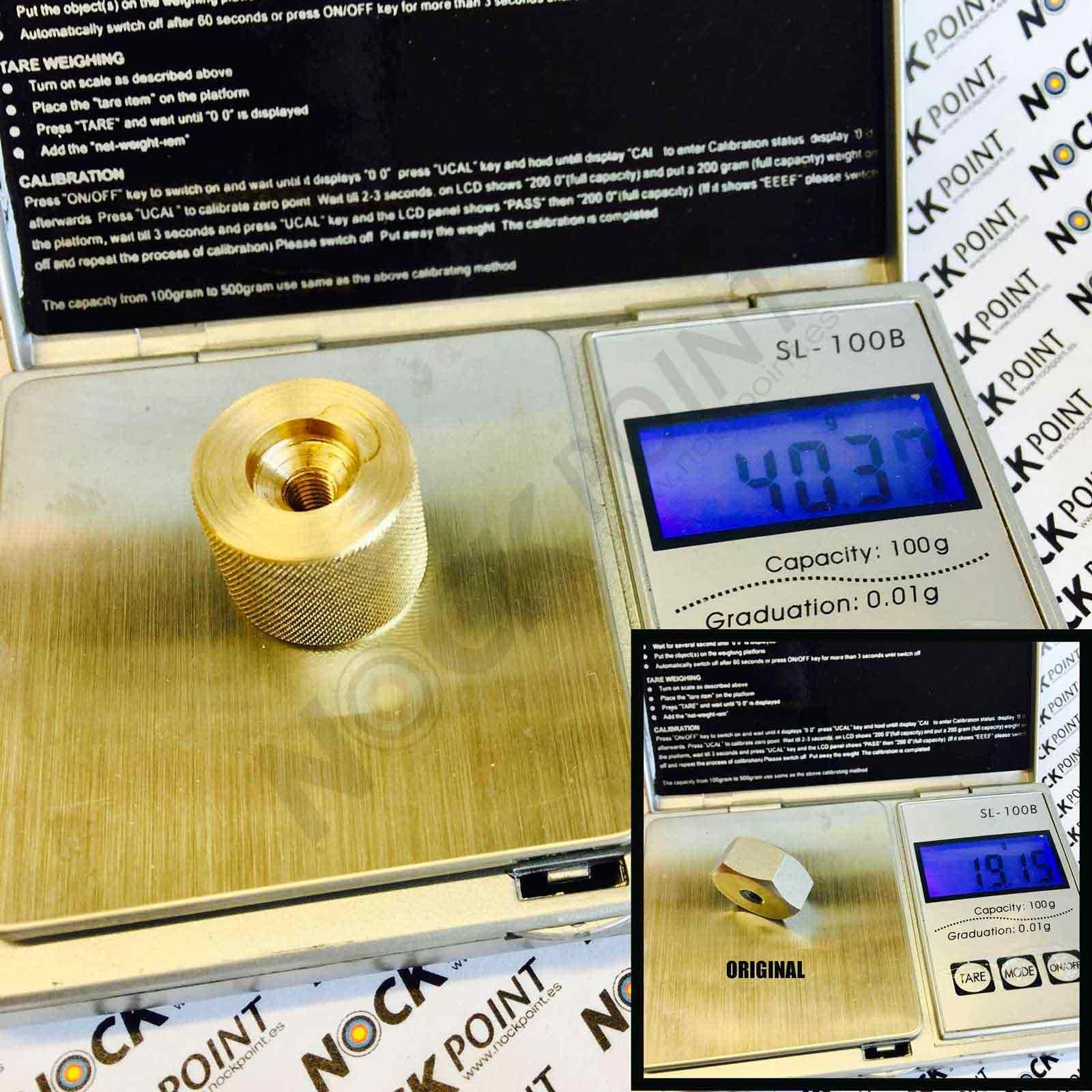 El peso extra de las tuercas fabricadas en latón (brass) aporta una mayor inercia al forrador permitiendo una mayor tensión en los forrados, evitando que puedan moverse o aflojarse.